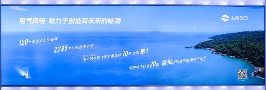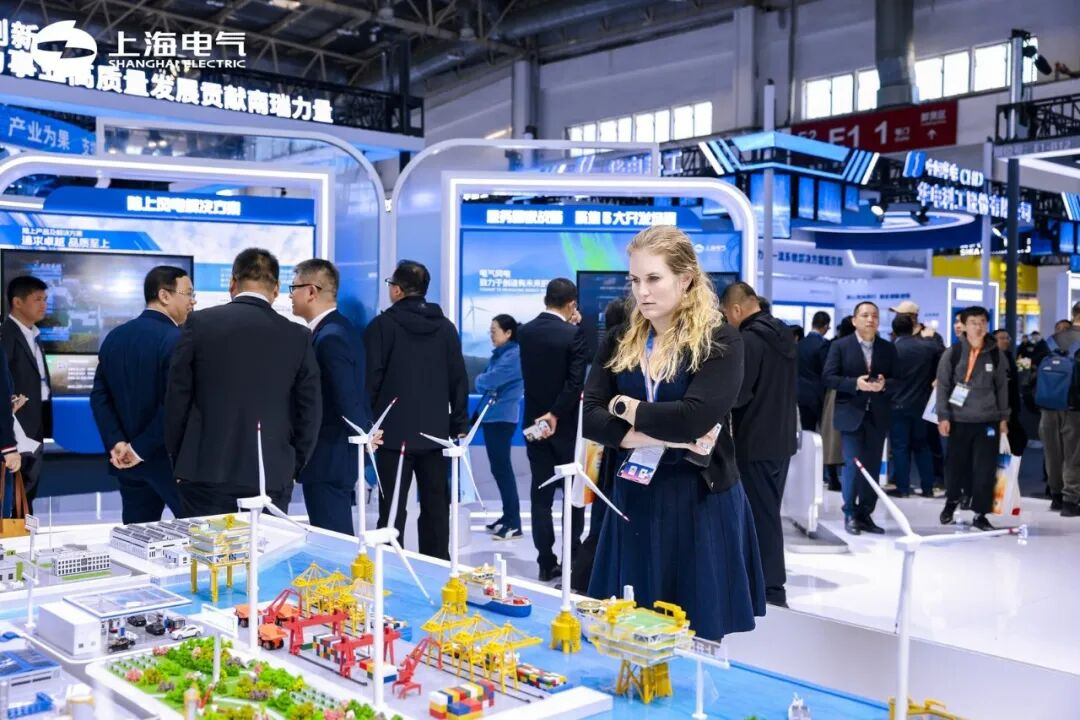 展台上的“WIND TO X POWER TO FUTURE” 中心展项,集中展示了中国首批绿电制氢就地消纳示范项目——上海电气洮南市风电耦合生物质绿色甲醇一体化示范项目、全球首个漂浮式风渔融合示范项目、深远海制氢示范项目及万里长江首个“零碳岛”等标杆示范案例,展示了上海电气在新能源全产业链的系统集成能力和创新实力。