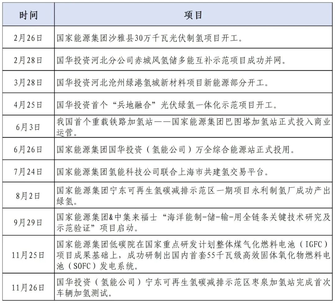 2024年以后国家能源集团部分相关氢能布局事件如下: