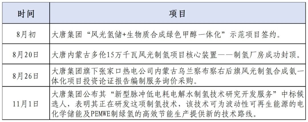 近年来,大唐集团积极推进氢能多场景示范应用工程,锚定“打造‘绿色低碳、多能互补、高效协同、数字智慧’世界一流能源供应商”愿景目标,在建设氢能产业发展基地、氢能技术攻关等方面进行了深入的探索。其氢能业务相关分公司是中国大唐集团新能源股份、大唐海南氢能。2024年以来部分氢能项目最新进展如下: