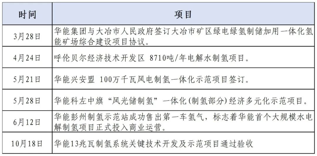 今年以来,国家电投有关氢能布局部分项目动态详情如下: