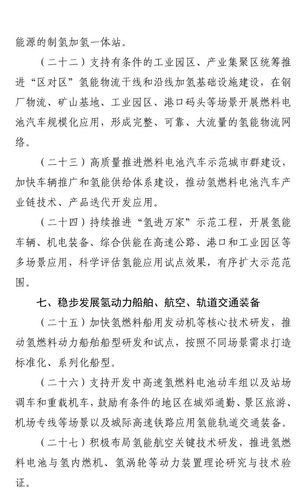 为保障氢能的高效利用,方案提出,开发大功率、高效率、长寿命燃料电池,高效率氢(氨)内燃机,以及高压力等级、高储氢密度车载储氢装置。鼓励燃料电池汽车示范项目就近利用高品质工业副产氢和可再生能源制氢,推动建设基于分布式可再生能源的制氢加氢一体站。支持有条件的工业园区、产业集聚区统筹推进“区对区”氢能物流干线和沿线加氢基础设施建设,在钢厂物流、矿山基地、工业园区、港口码头等场景开展燃料电池汽车规模化应用,形成完整、可靠、大流量的氢能物流网络。高质量推进燃料电池汽车示范城市群建设,加快车辆推广和氢能供给体系建设,推动氢燃料电池汽车产业链技术、产品迭代开发应用。持续推进“氢进万家”示范工程,开展氢能车辆、机电装备、综合供能在高速公路、港口和工业园区等多场景应用,科学评估氢能应用试点效果,有序扩大示范范围。