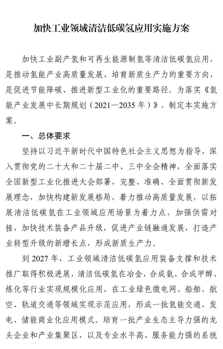 通知提出,到2027年,工业领域清洁低碳氢应用装备支撑和技术推广取得积极进展,清洁低碳氢在冶金、合成氨、合成甲醇、炼化等行业实现规模化应用,在工业绿色微电网、船舶、航空、轨道交通等领域实现示范应用,形成一批氢能交通、发电、储能商业化应用模式。培育一批产业生态主导力强的龙头企业和产业集聚区,以及专业水平高、服务能力强的系统解决方案供应商,初步构建较为完整的产业链和产业体系。